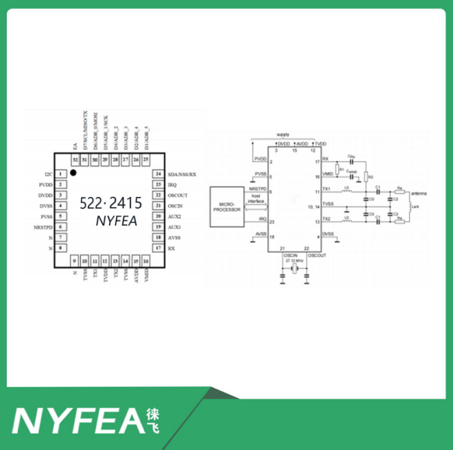 The NF522 is a highly integrated chip operating at 13.56MHz, manufactured using 0.18-micron CMOS process technology. It features low voltage, low power consumption, support for multiple interfaces, and multi-protocol compatibility. It is suitable for low-power, low-voltage, and low-cost contactless reader applications. It supports the following three protocol operation modes: